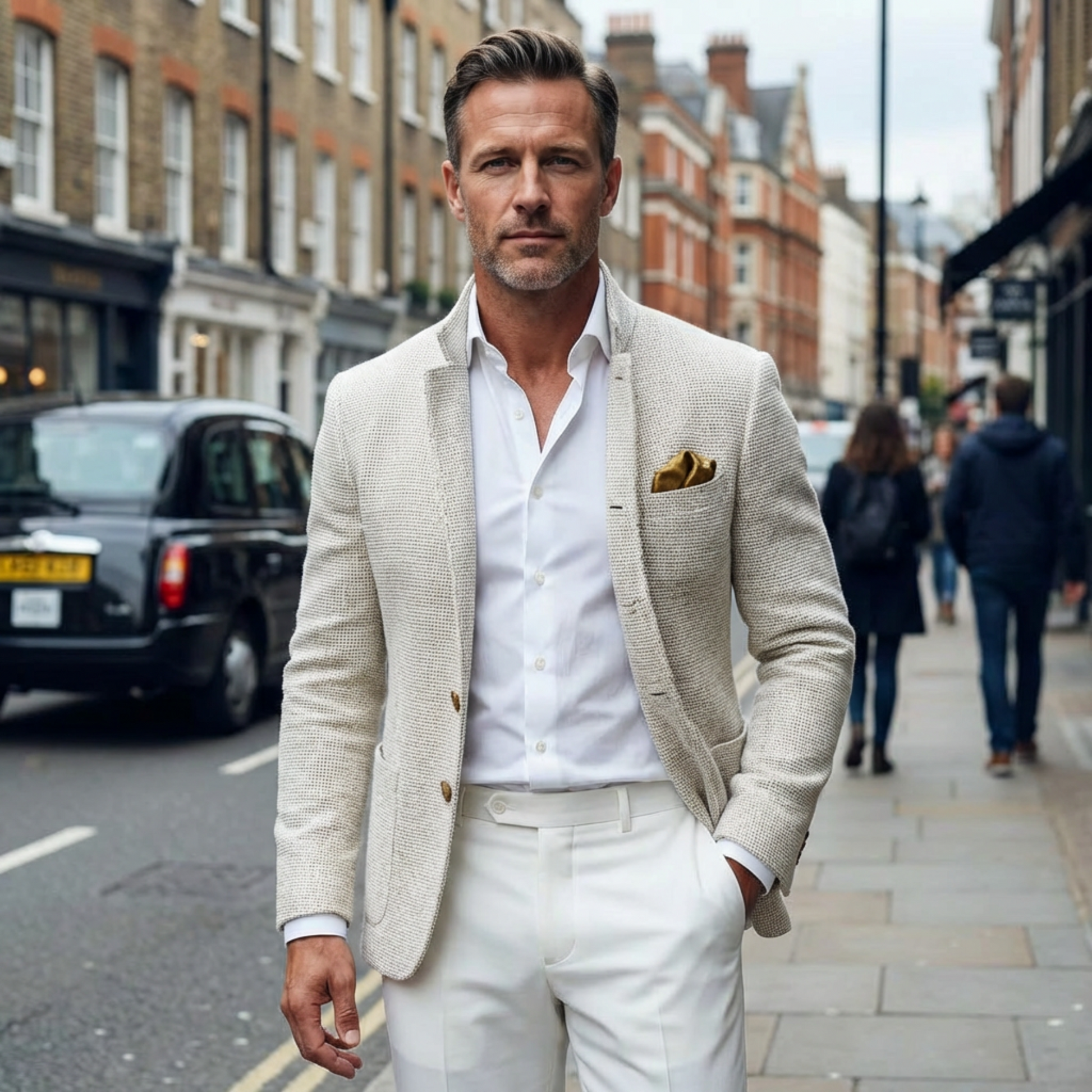 - Balanced silhouette – Long sleeves and structured shape foster a calm, assured look.