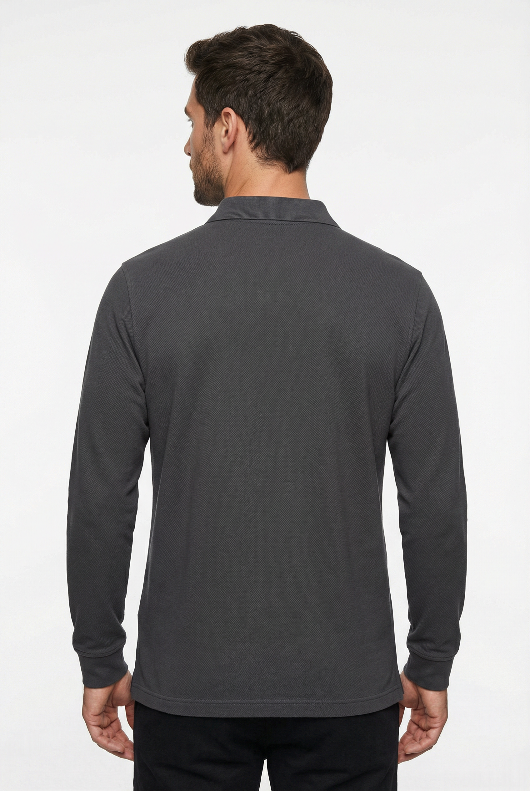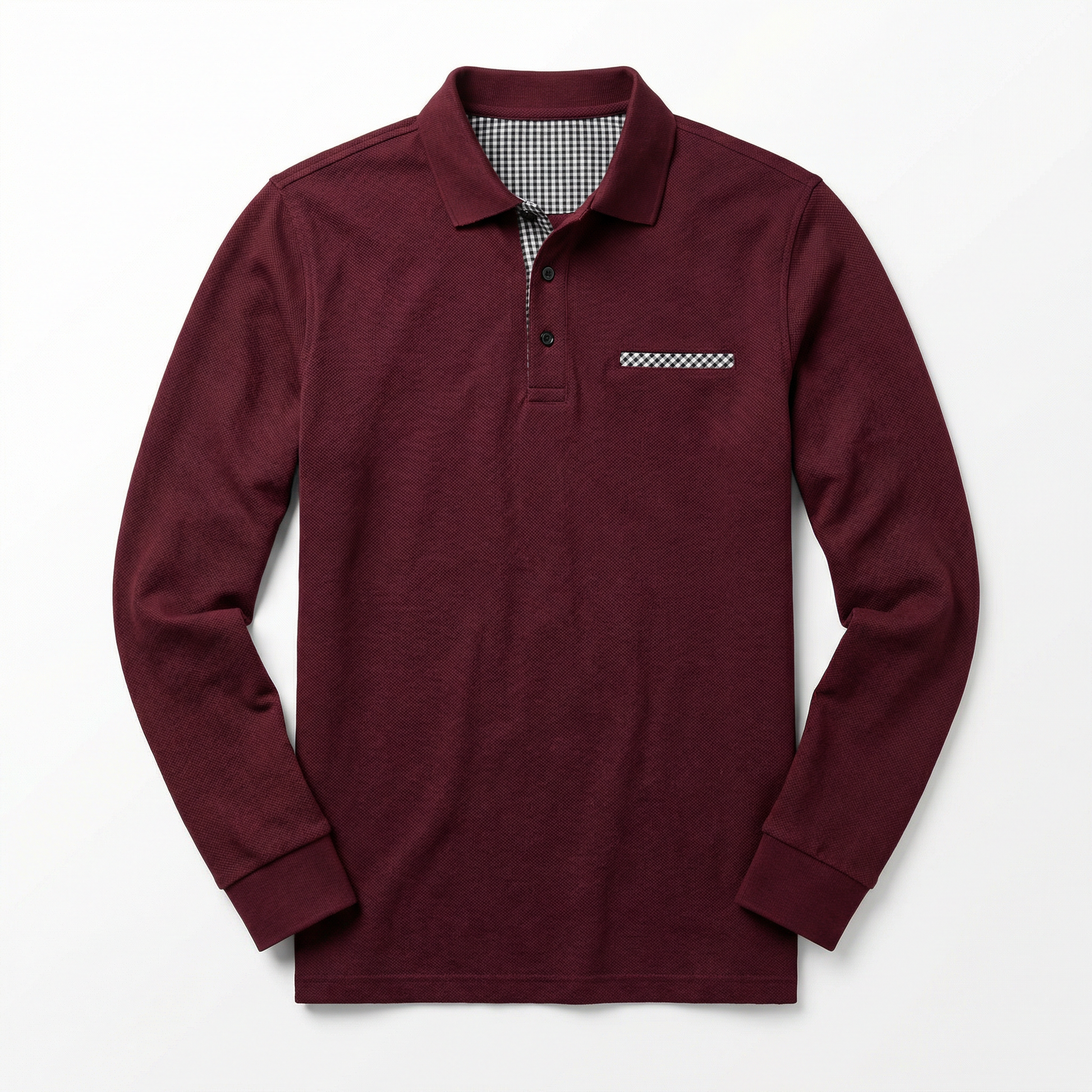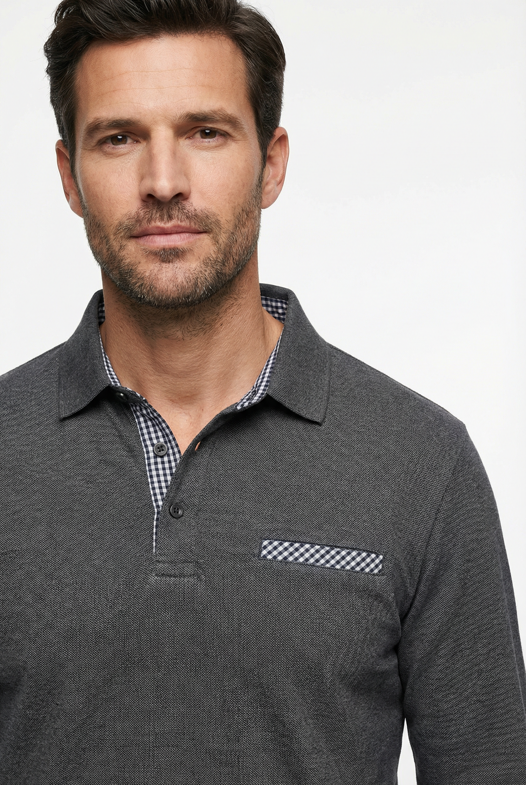 Polo Shirt Men’s Long Sleeve Turn-Down Collar Checked Pattern