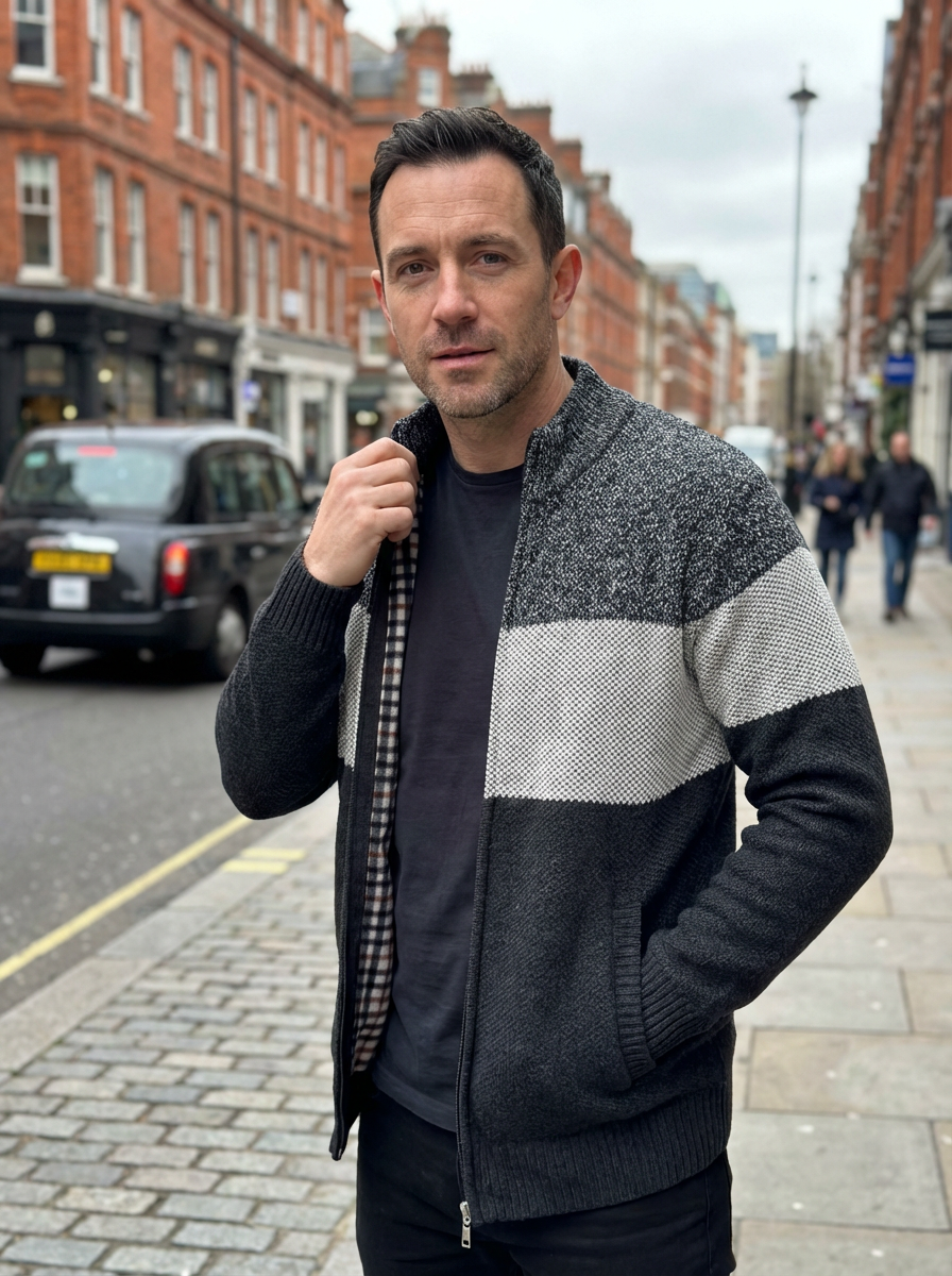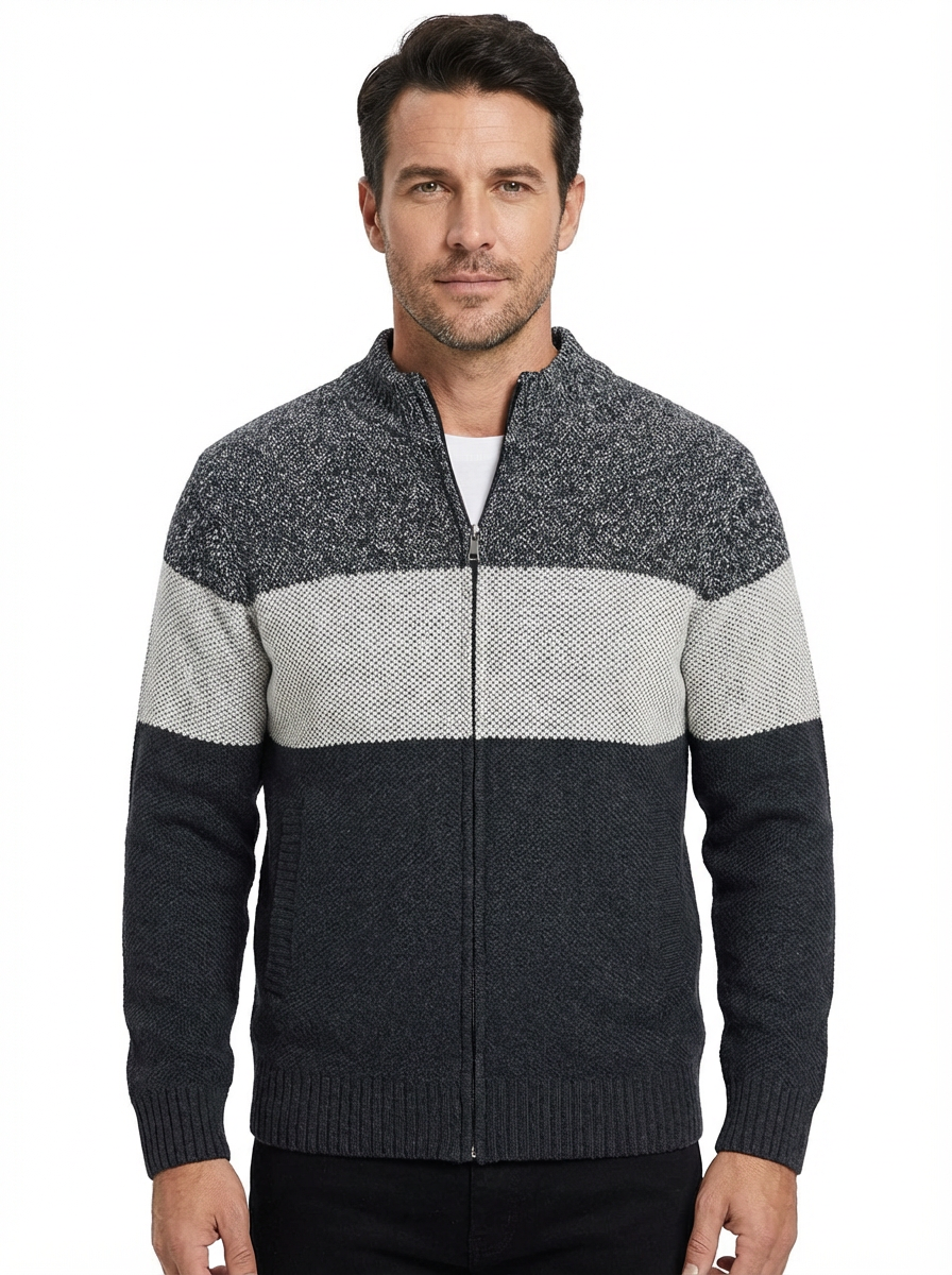 Sweater Jacket Men Stand-Up Collar Zipper Closure