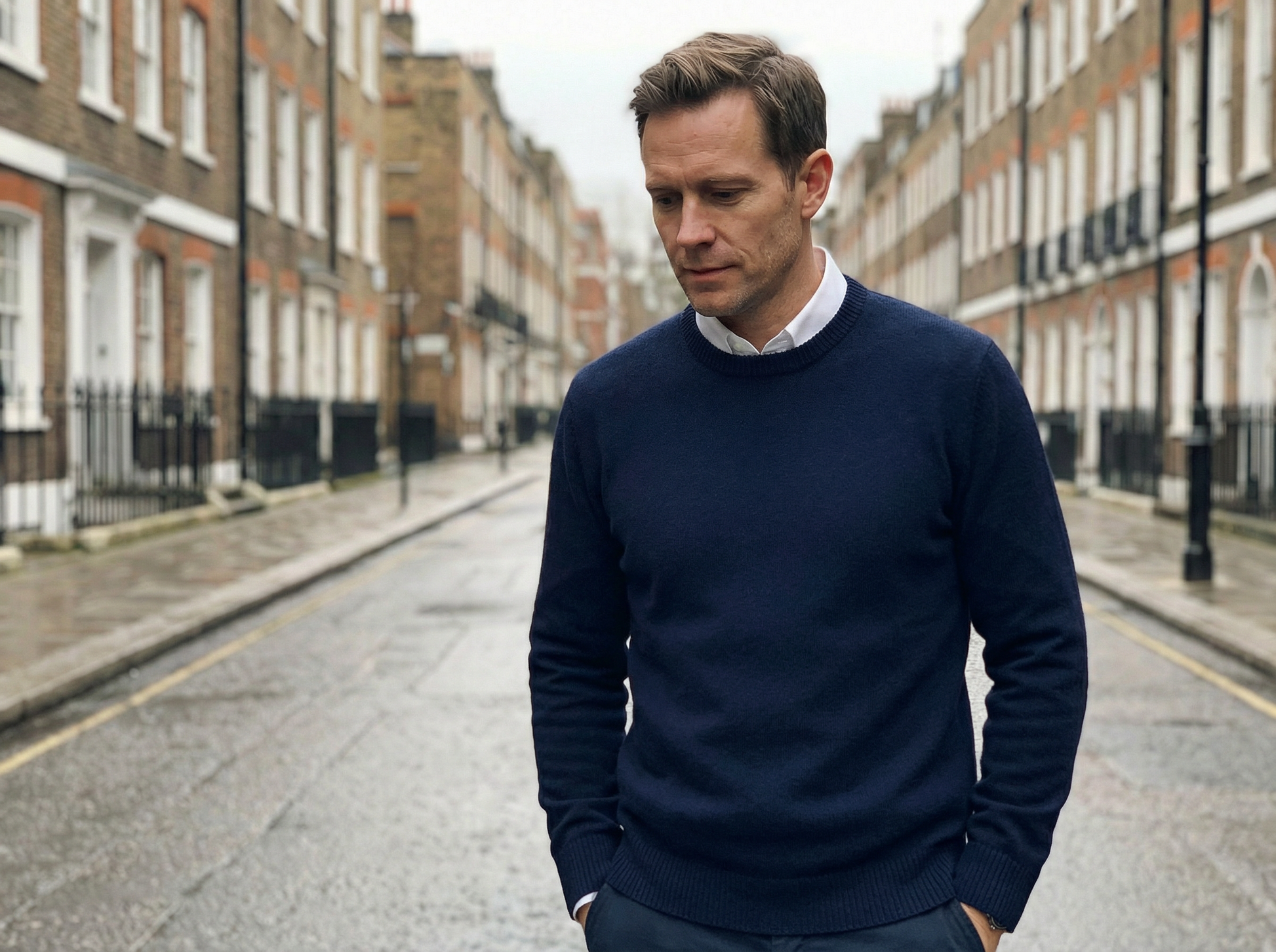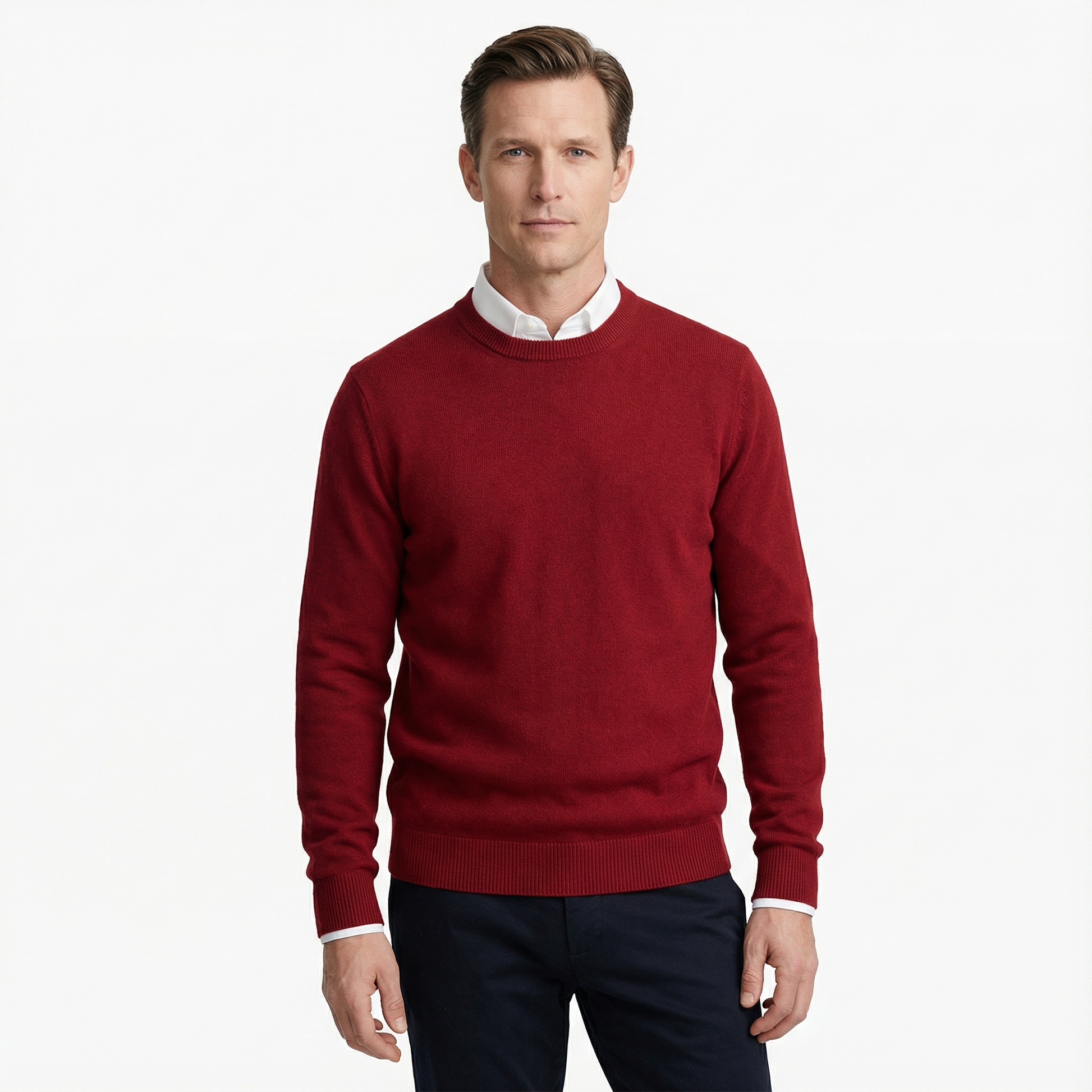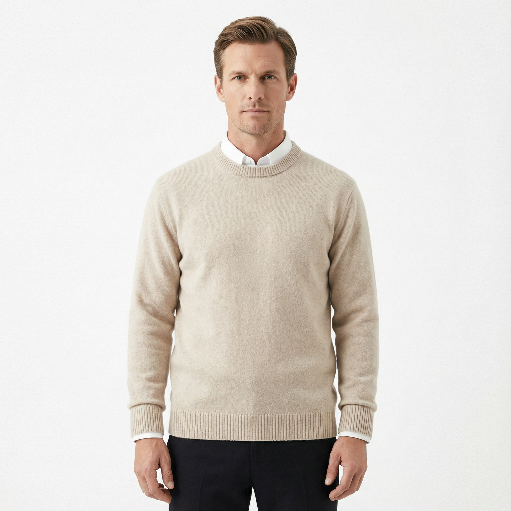 This sweater features a clean, classic silhouette with a calm and confident presence. The fit feels relaxed yet composed, allowing the garment to sit naturally on the body. Its surface appears smooth and refined, offering a reassuring sense of softness from the first wear. Designed to feel dependable and easy, it delivers comfort without visual noise.